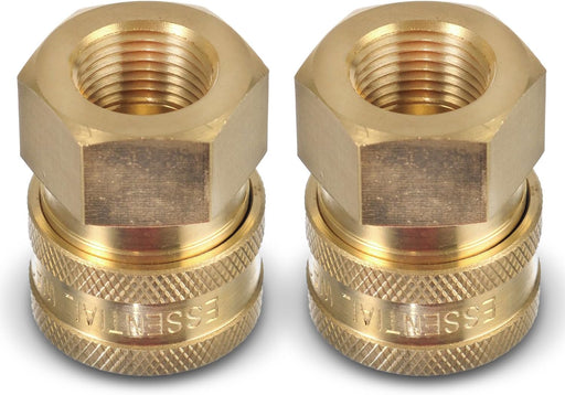 ESSENTIAL WASHER Brass 1/4" Female Quick Connect Fittings To Female NPT - Pressure Washer Couplers, 4200 PSI, 2 Pack
