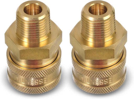 ESSENTIAL WASHER Brass 1/4" Female Quick Connect Fittings To Male NPT - Pressure Washer Couplers, 4200 PSI, 2 Pack