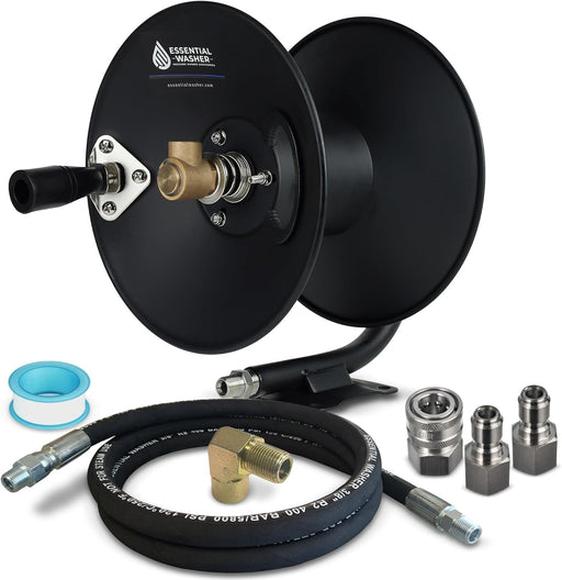 ESSENTIAL WASHER Pressure Washer Hose Reel 50 FT Kit | 4000 PSI Power Washer Hose Reel | Made For 3/8" Hose | Comes With Additional Accessories | (Assembly Required)